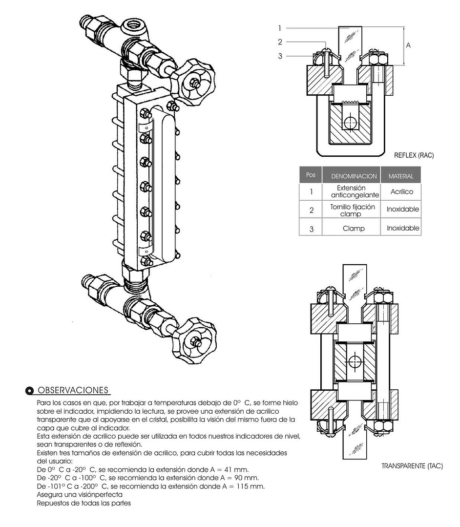Indicador de nivel visual con sistema anticongelante Para servicios en los que el fluido este a