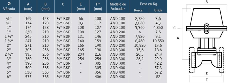 Los actuadores AND están disponibles en las siguientes versiones: